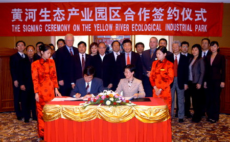 黄河科技产业园规划 100 平方公里,起步开发区域 2 平方公里,计划利用 10 年的时间开发完成 100 平方公里黄河科技产业园的建设,黄河 科技产业园 将以工业园区的开发为核心,吸引国际和国内的企业到黄河科技产业园投资,在 8 年内实现年产值 1500 亿元,并利用三分之一的土地用于房地产开发,创造 1000 亿元的市值,实现每年 10 亿元的房地产开发收益,同时,还将在黄河边建造以黄河为主题的黄河公园,在黄河边建造 99 米 高的以轩辕黄帝为代表的 100 个皇帝塑像,树立黄河主题公园的社会形象;另外还将在黄河公园内建设综合的星级酒店群和 360 洞的高尔夫球场,吸引世界名流来此观光渡假,一睹黄河风采,以此打造东方的“拉斯维加斯”新城;并创造每年 20-30 亿元的旅游和会议收入。