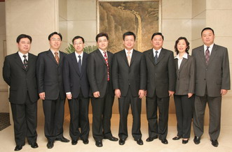 President Mr. Wang Tianyi and his company take a picture with Mr.